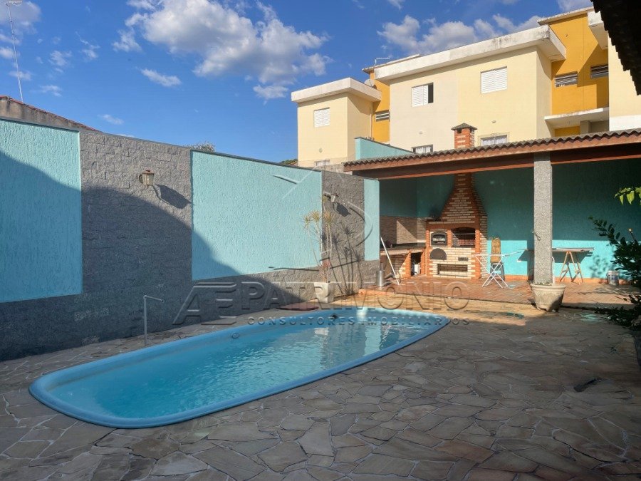 A casa é equipada com acessórios que incluem um espaço gourmet, churrasqueira e piscina, proporcionando um ambiente completo para a família e amigos.