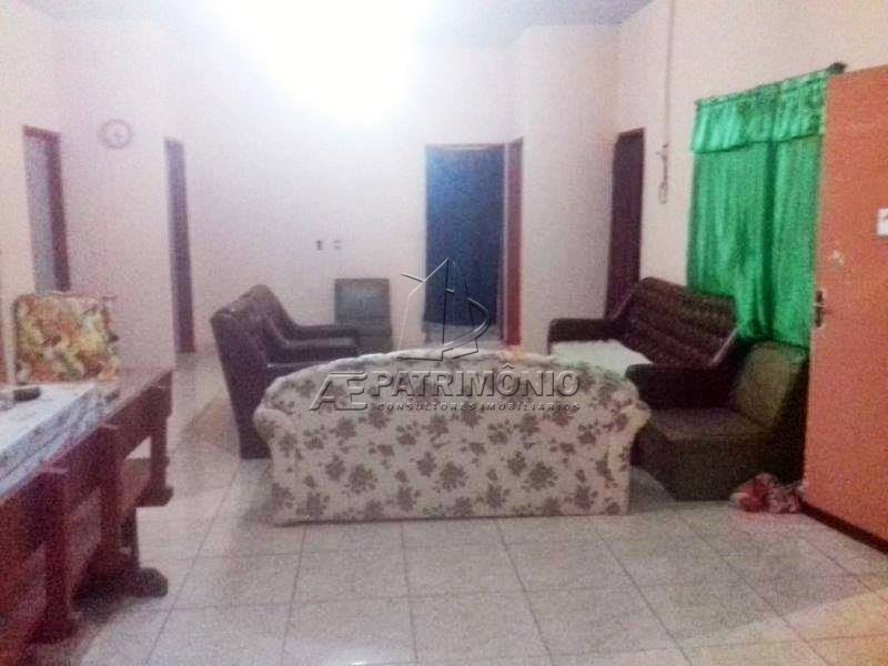 Sítio com sala 2 ambientes, varanda, cozinha, banheiro social, 3 dormitórios, área de serviço e 4 garagens descobertas.