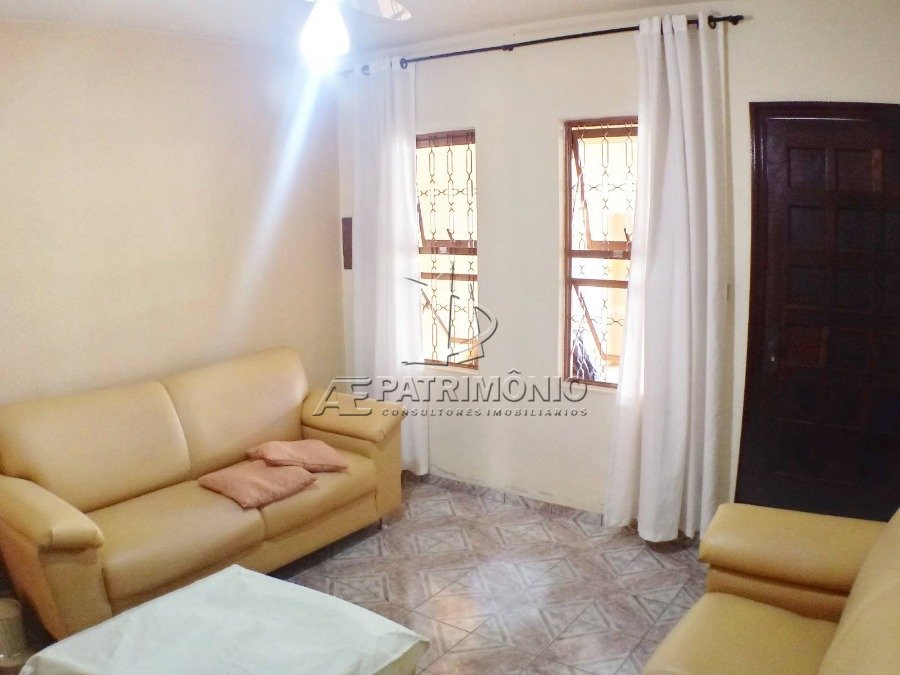 Sobrado com sala de estar, copa cozinha, 2 banheiros sociais, 2 dormitórios, área de serviço e 2 garagens cobertas.