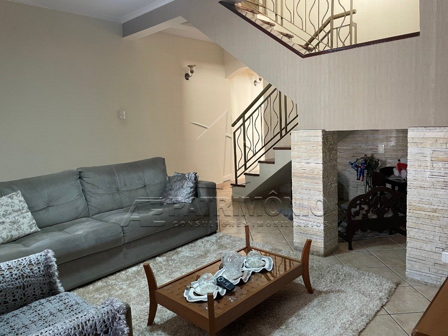 Casa assobradada com sala de estar, lavabo, cozinha, 3 suítes, varanda, área de serviço, espaço gourmet e 2 garagens cobertas.