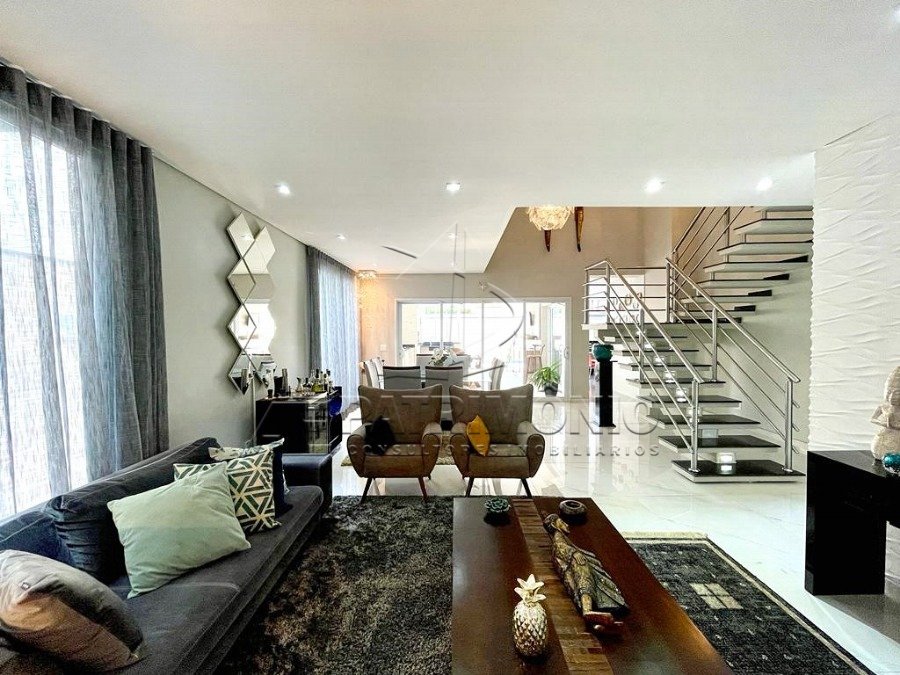 Sobrado com sala 2 ambientes, com pé direito duplo integrado a área gourmet, sala de tv, lavabo, cozinha planejada, despensa, escritório com banheiro, 3 suítes sendo, 1 máster, área de serviço, espaço gourmet, piscina aquecida, banheiro externo, amplo quintal, garagem para 4 veículos, sendo 2 cobertas.