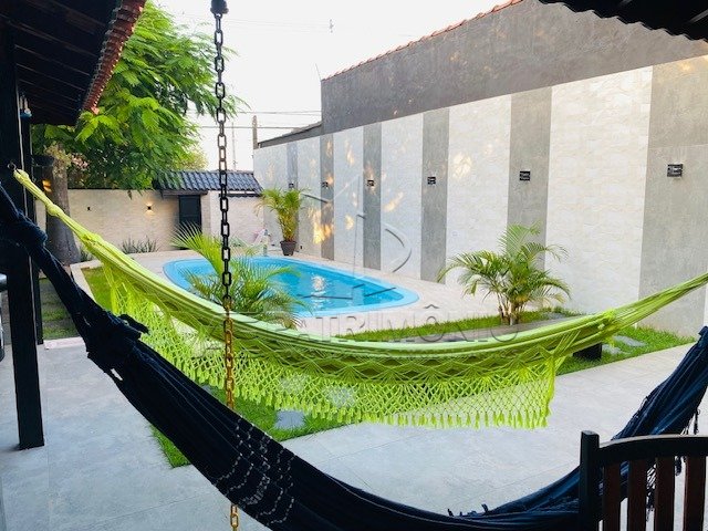 A varanda gourmet, com rede na frente da casa, integra-se harmoniosamente com a piscina e o jardim bem arborizado, criando um ambiente perfeito para momentos de lazer e descontração. A iluminação é toda em LED, incluindo arandelas ao redor da piscina, luz interna na piscina, cascata e ducha.