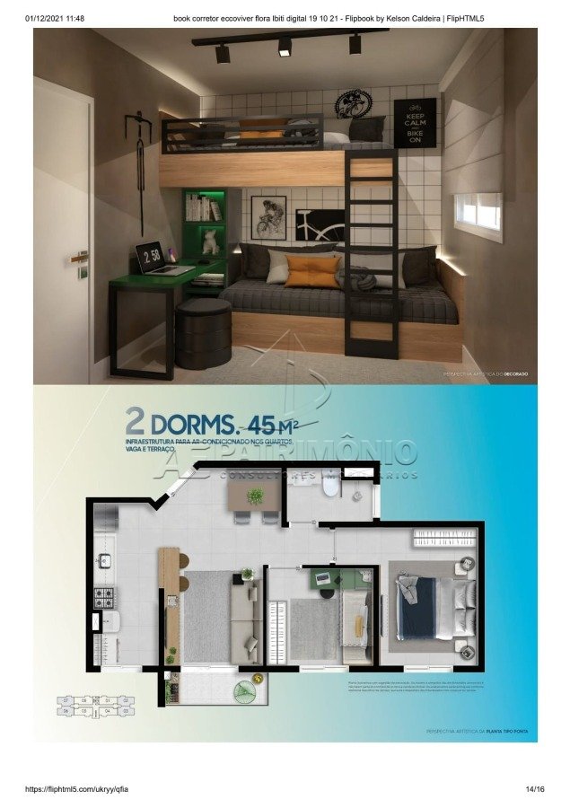 Com 45m², o imóvel conta com varanda, piso cerâmico, cozinha com gabinete e já está decorado, oferecendo praticidade e conforto desde o primeiro dia.